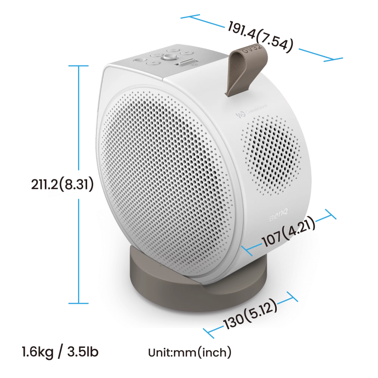 Der Projektor BenQ GV32 verarbeitet und zeigt alle Materialien in hoher Auflösung perfekt an. Er entspricht den neuesten Standards für den Heimgebrauch. Die Full-HD-Auflösung ermöglicht scharfe, detailreiche Bilder ohne Verkleinerung oder Komprimierung. BenQ GV32 ist die ideale Wahl zum Anschauen von Blu-ray-Filmen, HD-Fernsehen und Videospielen.
