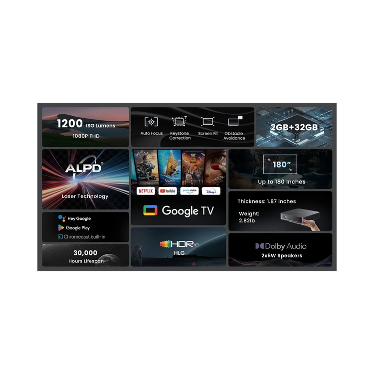 3D, Auto Focus, Bluetooth, Dolby Audio, HDR10, HLG, Integrierter Lautsprecher, Lichtquelle mit langer Lebensdauer, WiFi