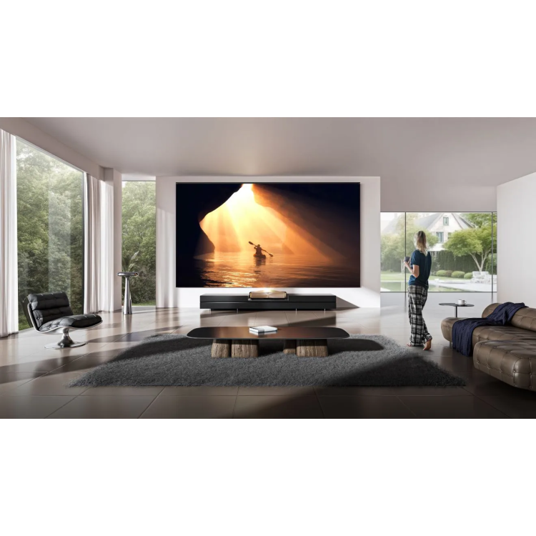 Der Projektor Hisense L9Q verarbeitet und zeigt alle Materialien in hoher Auflösung perfekt an. Er entspricht den neuesten Standards für den Heimgebrauch. Die 4K-Auflösung ermöglicht scharfe, detailreiche Bilder aus UHD-Inhalten, ohne Verkleinerung oder Komprimierung. Hisense L9Q ist die ideale Wahl zum Anschauen von Blu-ray-Filmen, HD-Fernsehen und Videospielen.