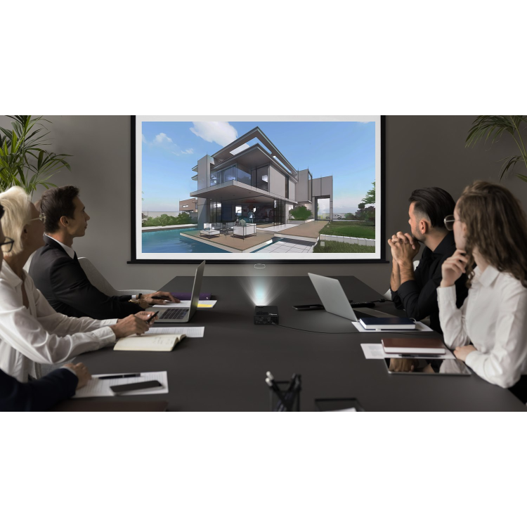 Der Projektor Optoma ML750i zeigt ein Bild in einer Auflösung von 1280x800px an. Das Bildformat ist 16x10 und für dieses Format empfehlen wir am besten eine Projektionswand. Die Technologie, die für hervorragende Bildqualität verantwortlich ist, lautet DLP. Das maximale erreichbare Kontrastverhältnis des Projektors Optoma ML750i beträgt 20000:1. Der Projektor wiegt lediglich 0.425 kg.